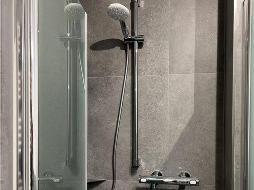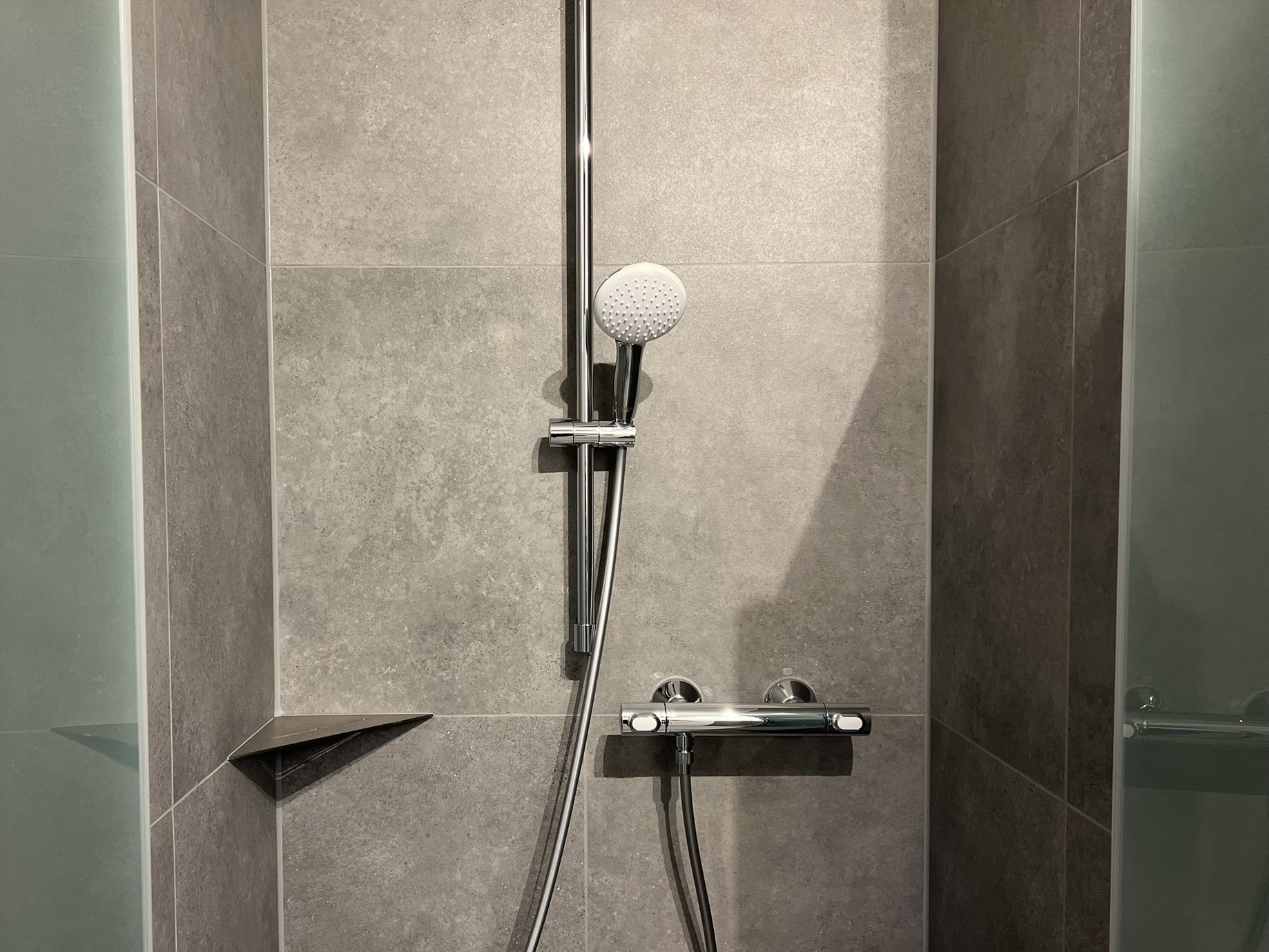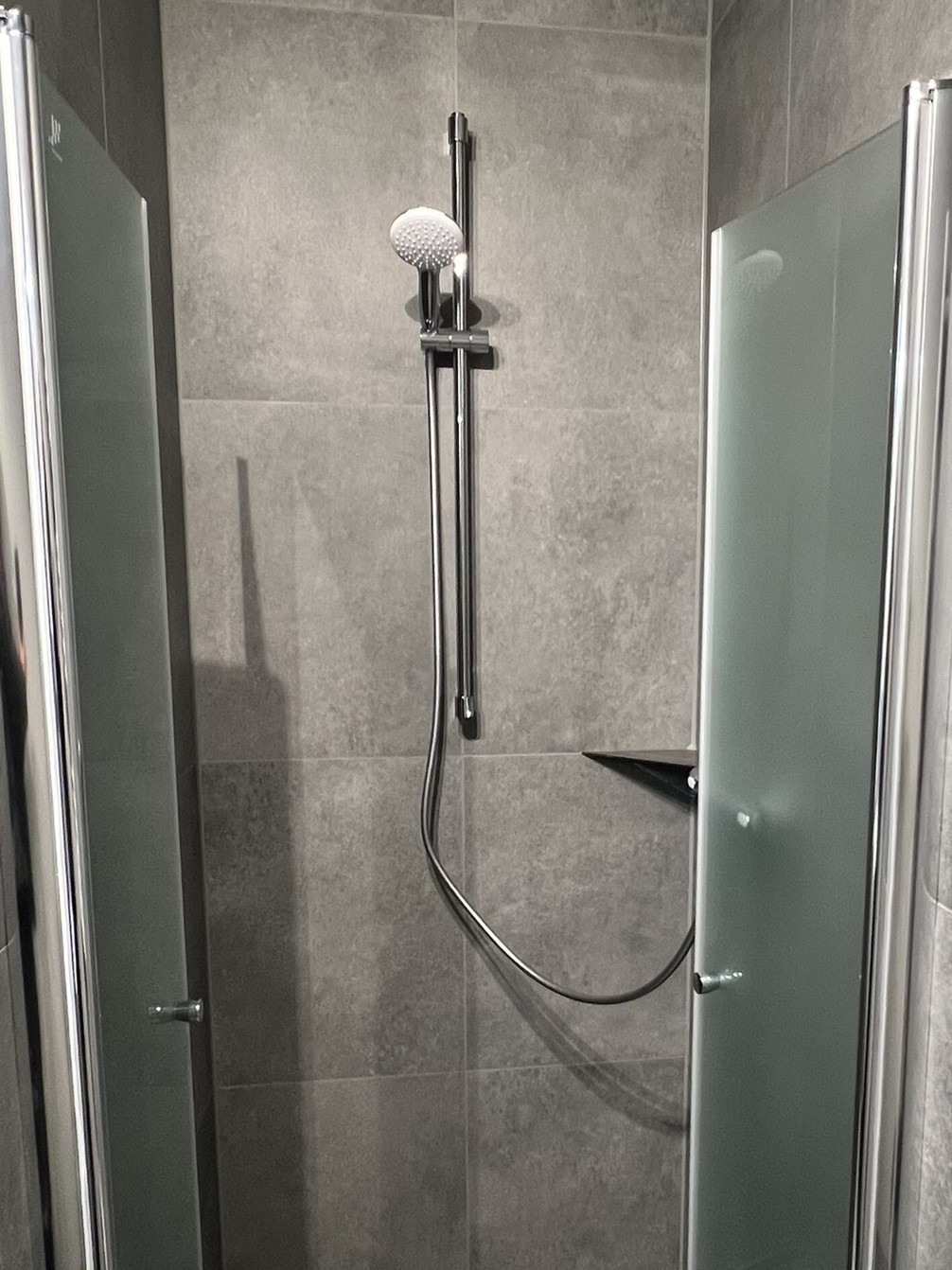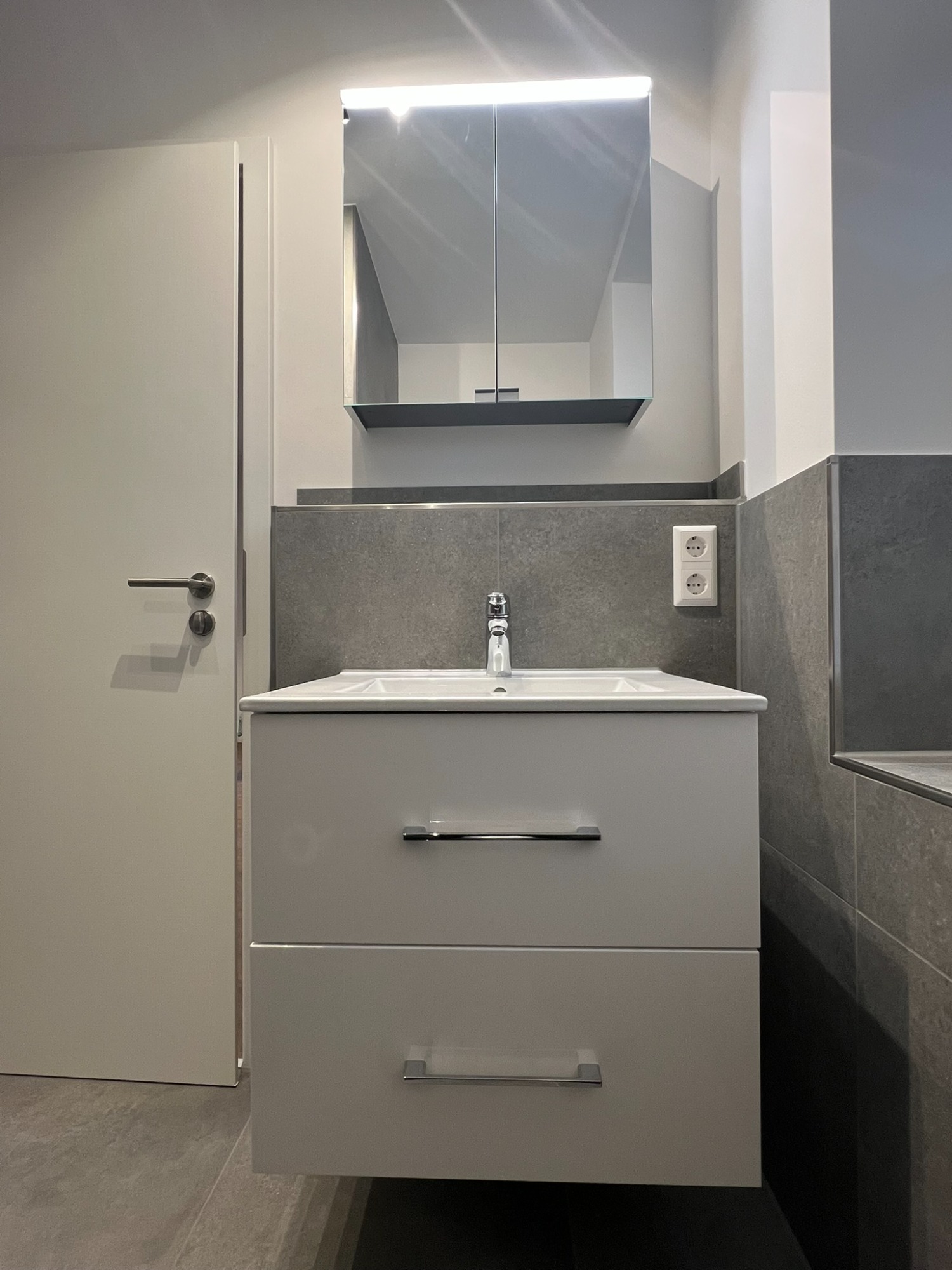 Bad: Dusche ebenerdig | WC | Waschbecken | Spiegelschrank