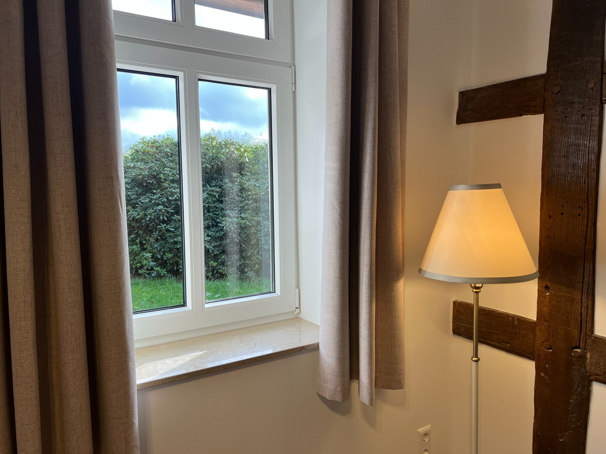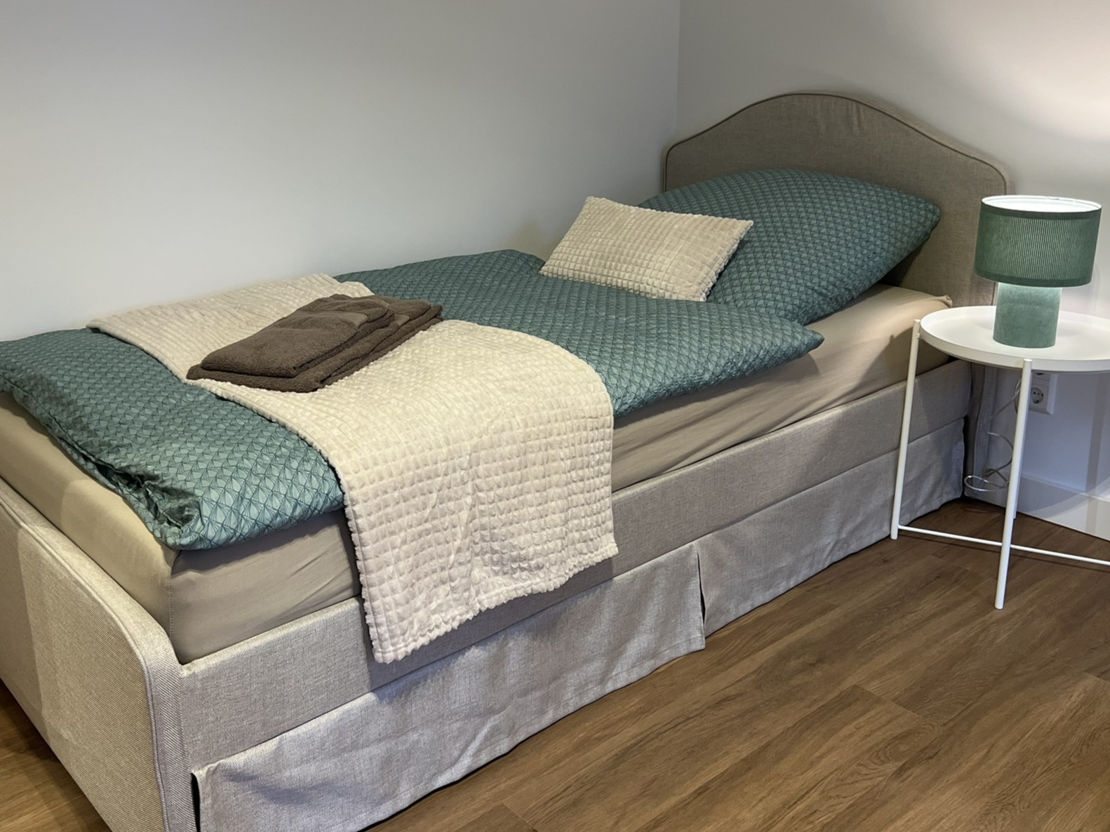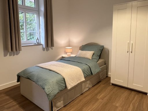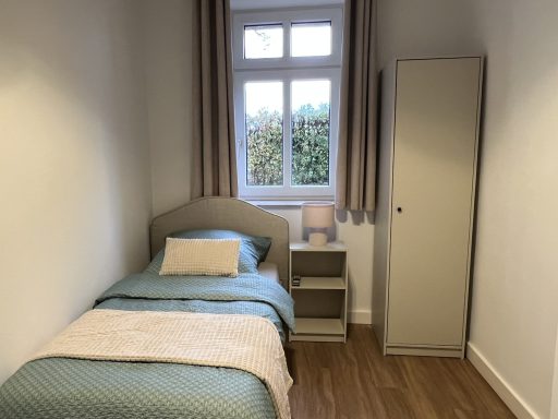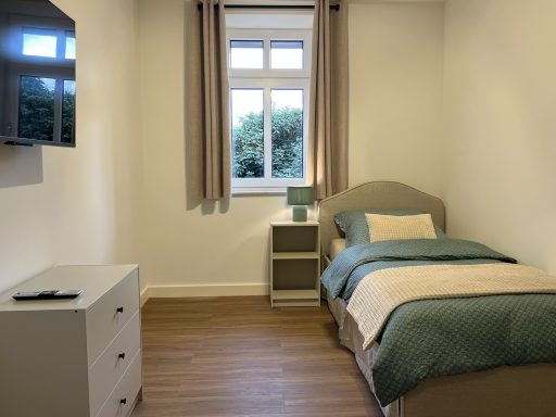 Schlafen: Einzelbett | Kleiderschrank | Smart-TV | Gartenblick