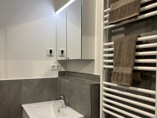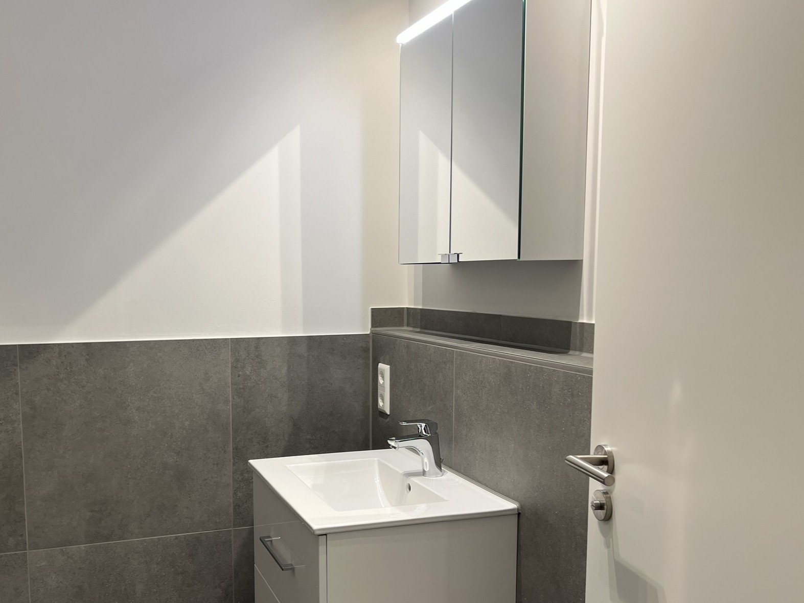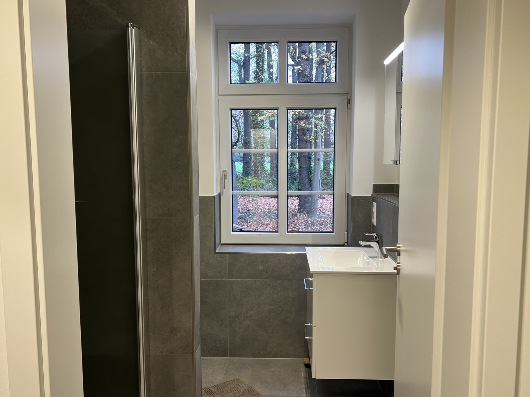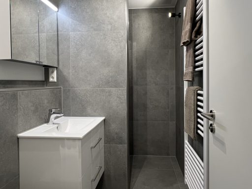 Bad: Dusche ebenerdig | WC | Waschbecken | Spiegelschrank | Bad mit Fenster